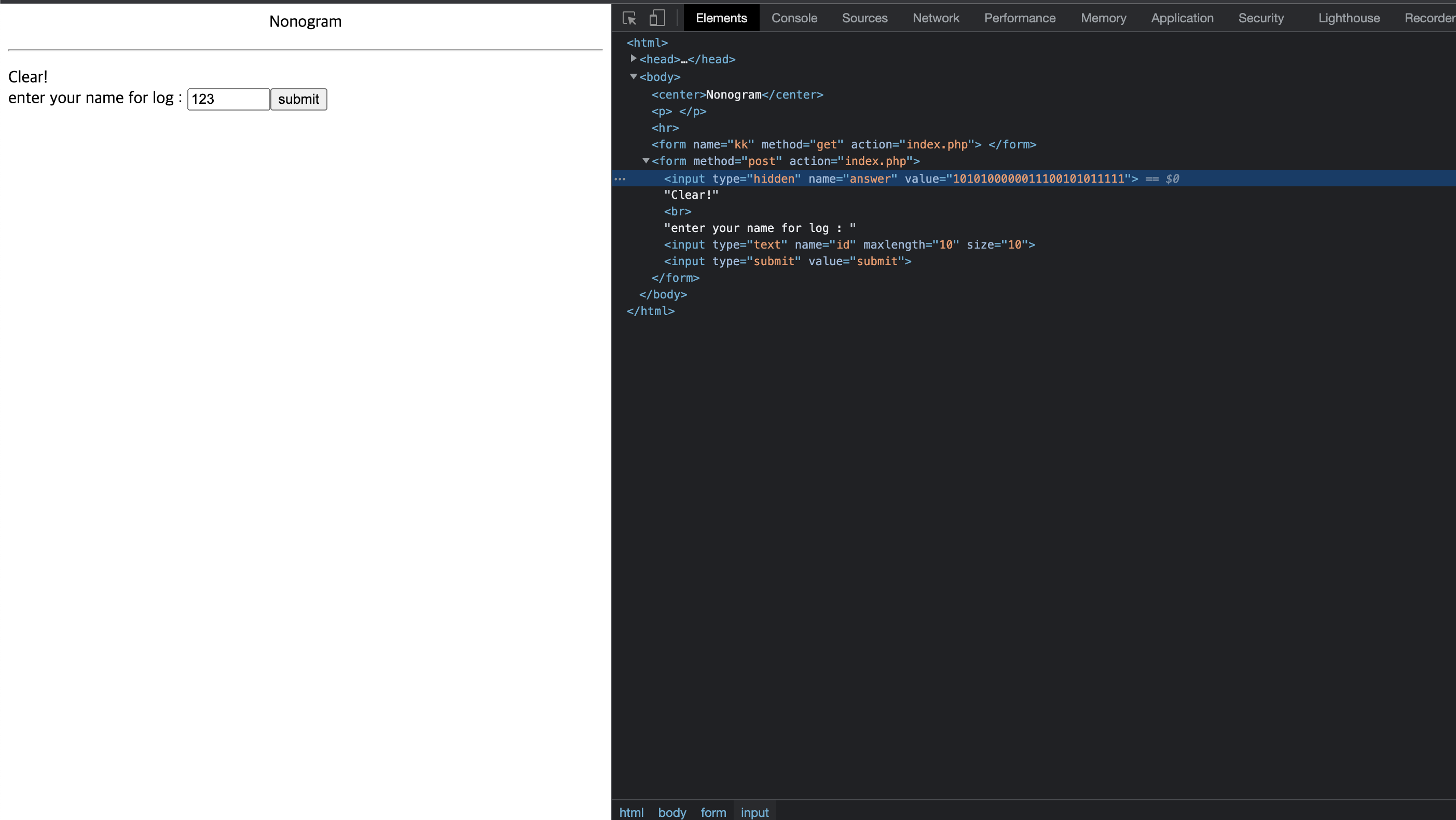 소스코드를 보니 hidden value로 answer 값을 보내는 거였군요...