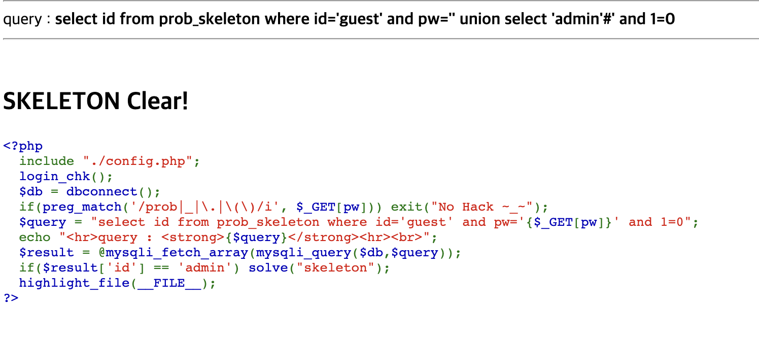 Lord of SQL Injection - Skeleton 풀이 본문