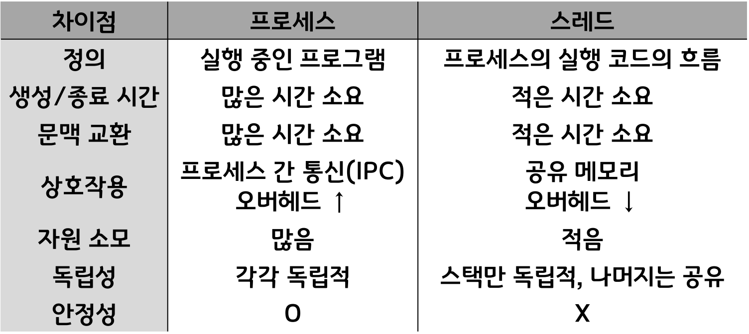 - 프로세스보다 가볍고 문맥 교환이 간편함.