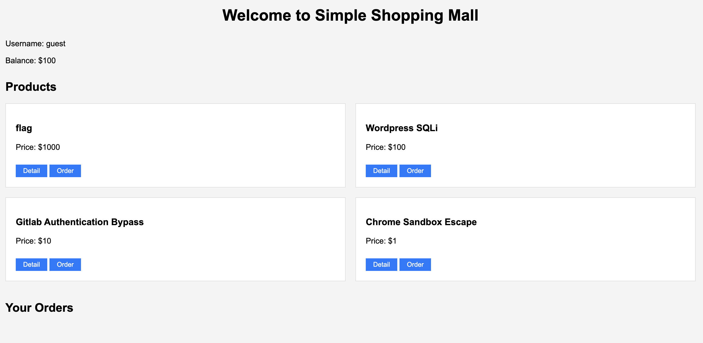 이런식으로 물품을 구매할 수 있게 리스트를 주고, FLAG는 100$인데 처음 로그인 하면 오직 100$밖에 안준다.