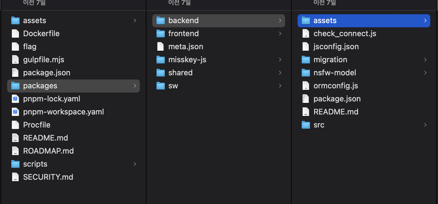 일단 misskey의 경우 디렉토리 구조가 너무 더러워서 분석할 엄두가 안났고,