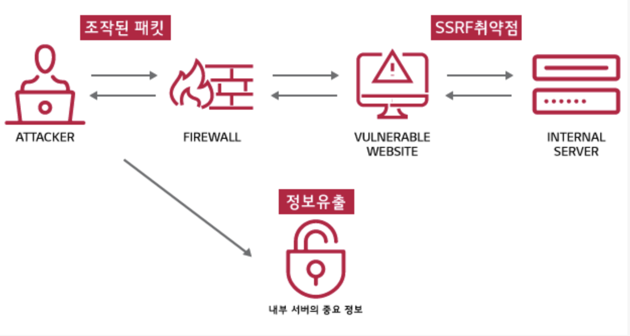 웹 서비스에서 취약점으로 발생합니다. SSRF는 저 말고도 정리한 글이 많으니, 해당 글을 보고 이해가 되지 않았다면