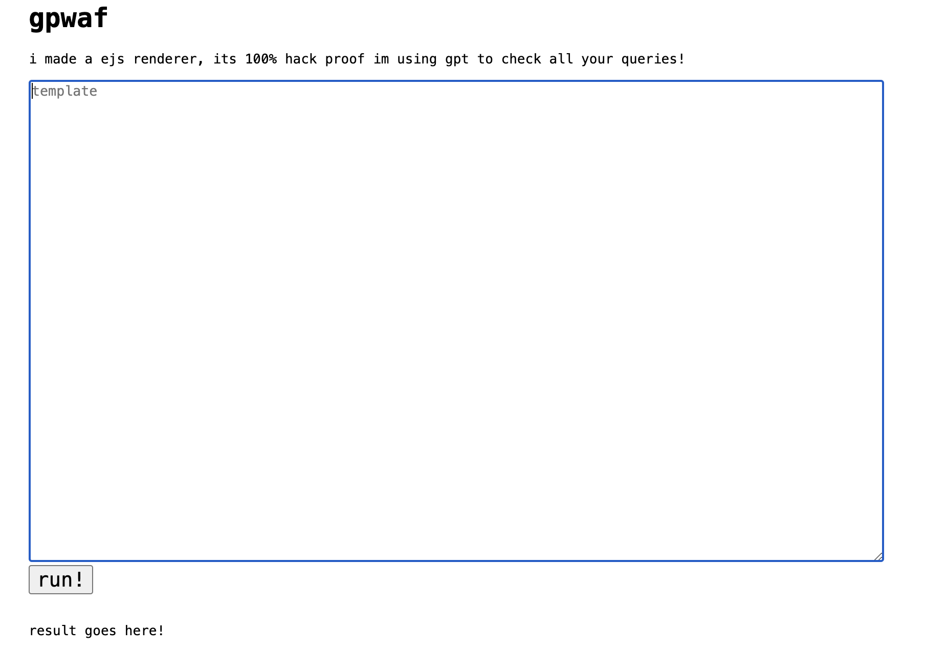 <textarea id="code" placeholder="your code here" rows="20" cols="80"></textarea>