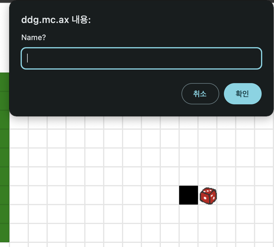 주사위와 검은 사각형이 만나면 이름을 물어보고,