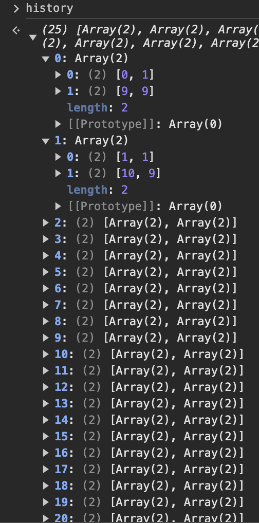 history는 형태를 봤을 때, 단순히 플레이어와 검은 사각형의 이동 좌표를 기록한 것 같습니다.