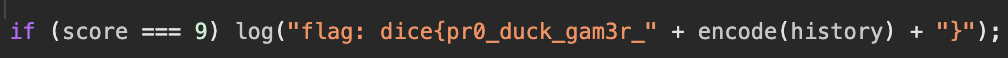 플래그의 형태는 dice{pr0_duck_gam3r_ + encode(history) + } 인 것을 확인할 수 있습니다.