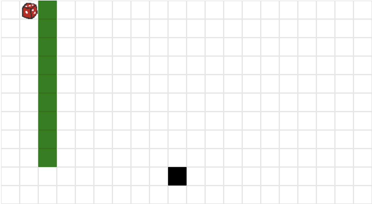 게임을 9번만에 이기기 위해선, 주사위와 검은 사각형이 다음과 같은 절차로 움직일 것입니다.