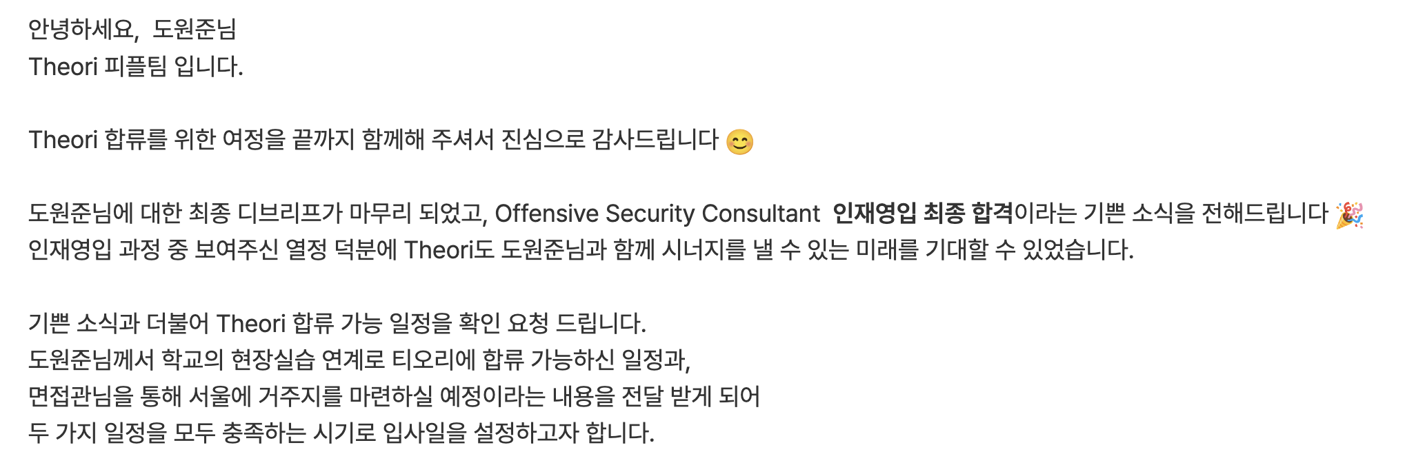 2024년 5월 14일 오후 4시경 Theori SA팀에 최종 합격하게 되었다.