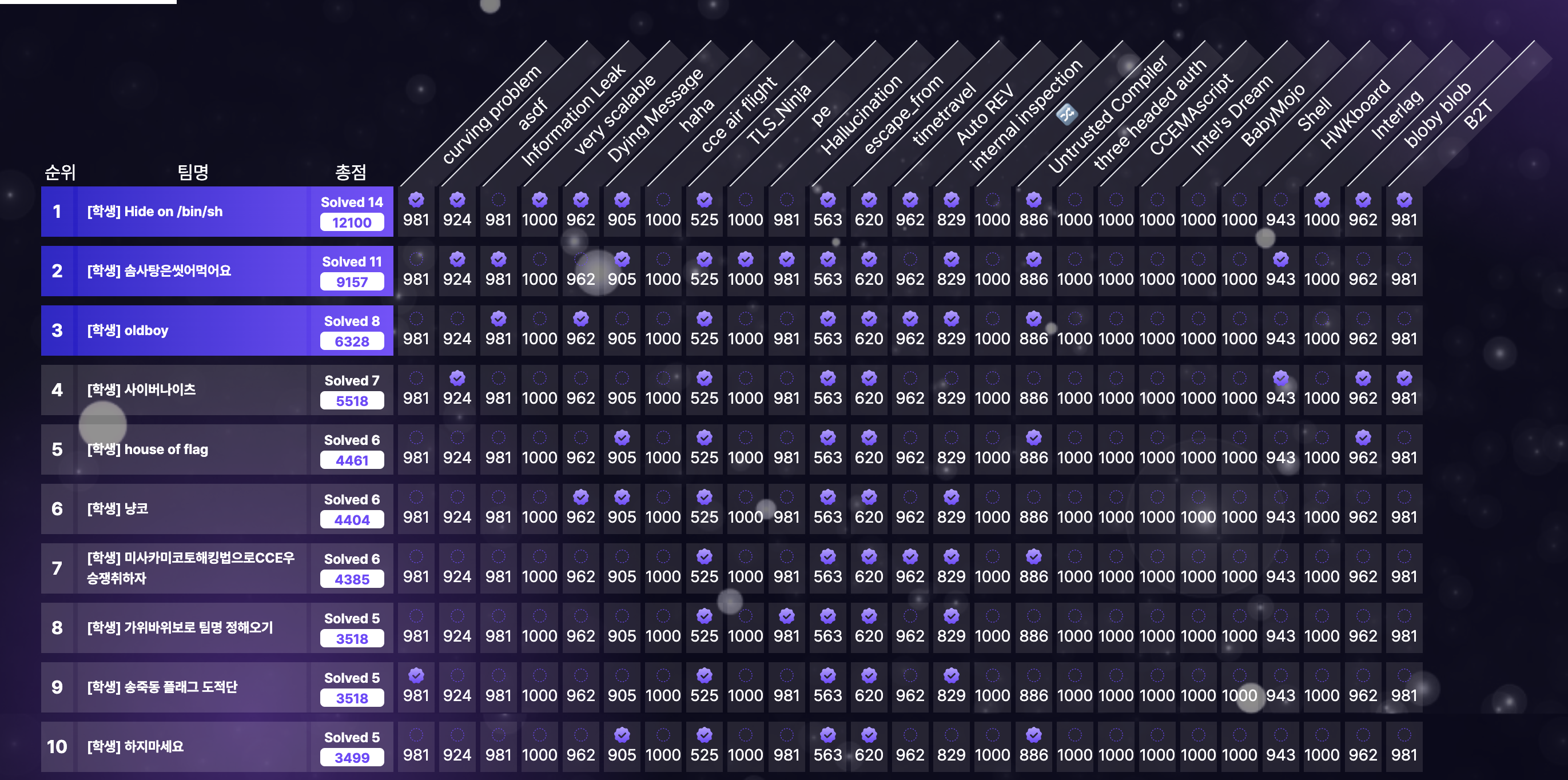 다 풀진 못했지만 학생부에서 웹 최다 솔브 였기에 기분이 좋았고,
