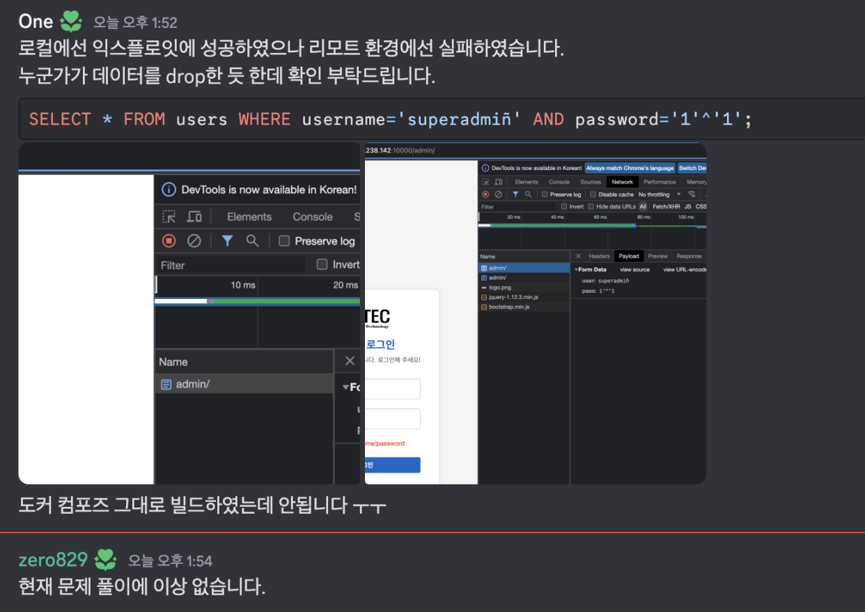 리모트 환경에서 안되는 게 이해가 되지 않았고, 누가 데이터를 Drop한 줄 알고 바로 문의를 넣었다.